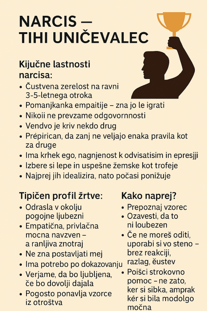 “Narcis ne išče partnerja, temveč lutko, ki jo lahko nadzoruje.”