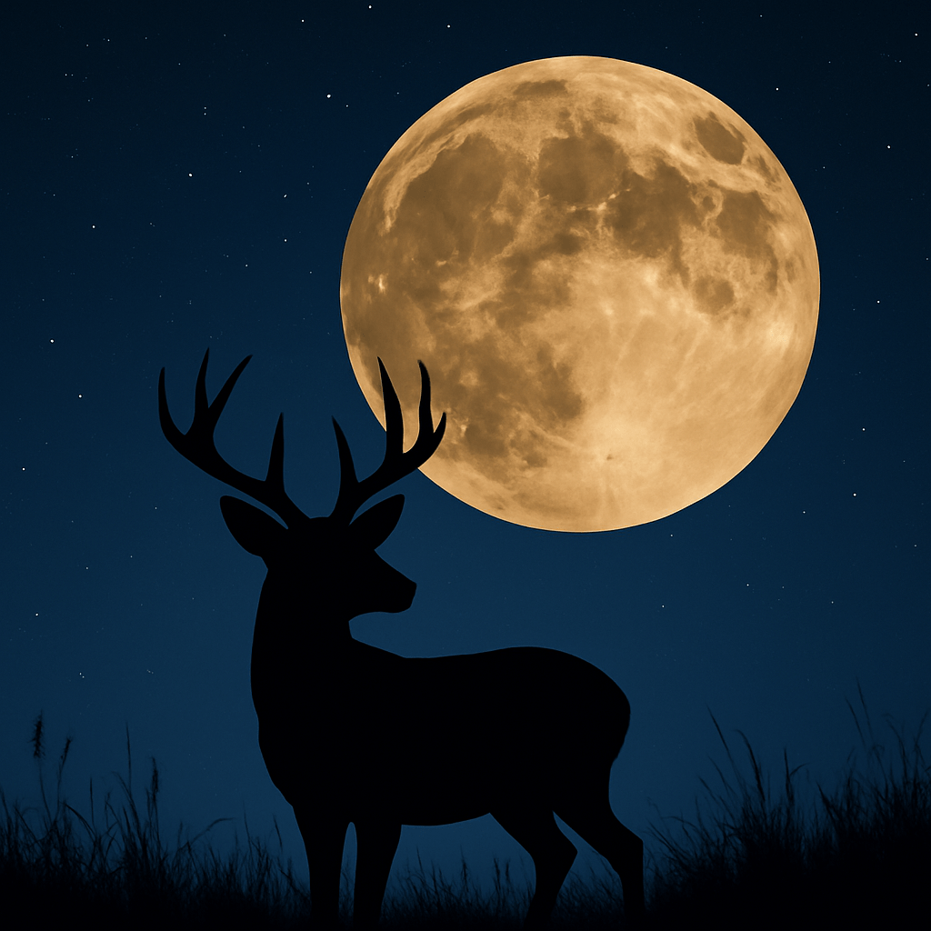 Името Buck Moon доаѓа од набљудувањата на природата кај домородните народи на Северна Америка. Во овој период младите елени (англ. bucks) почнуваат да развиваат нови рогови – покриени со меко кадифе. Роговите симболизираат машка сила, моќ, цикличен раст и природна трансформација.