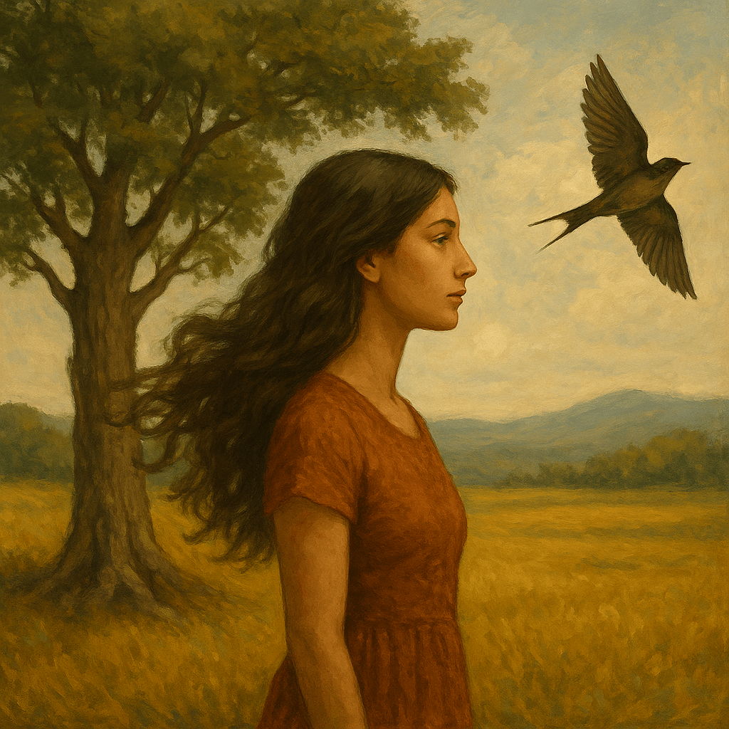 А јас стојам – не клечам во ќош, зашто знам која сум – без маска, без ѕид. Нека зборуваат – ако тоа им е леб, јас подобро градам мостови – од пердув, не од гнев.